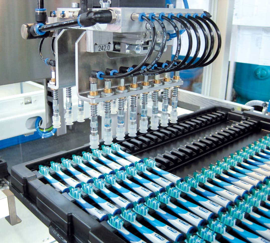 aus dem Konsumgüterbereich. Ein Spezialgebiet von uns liegt dabei im Bereich der Zahnbürstenproduktion. Egal ob Handzahnbürste, elektrische Zahnbürste oder Interdentalbürste – wie auomatisieren Ihre Produktion.